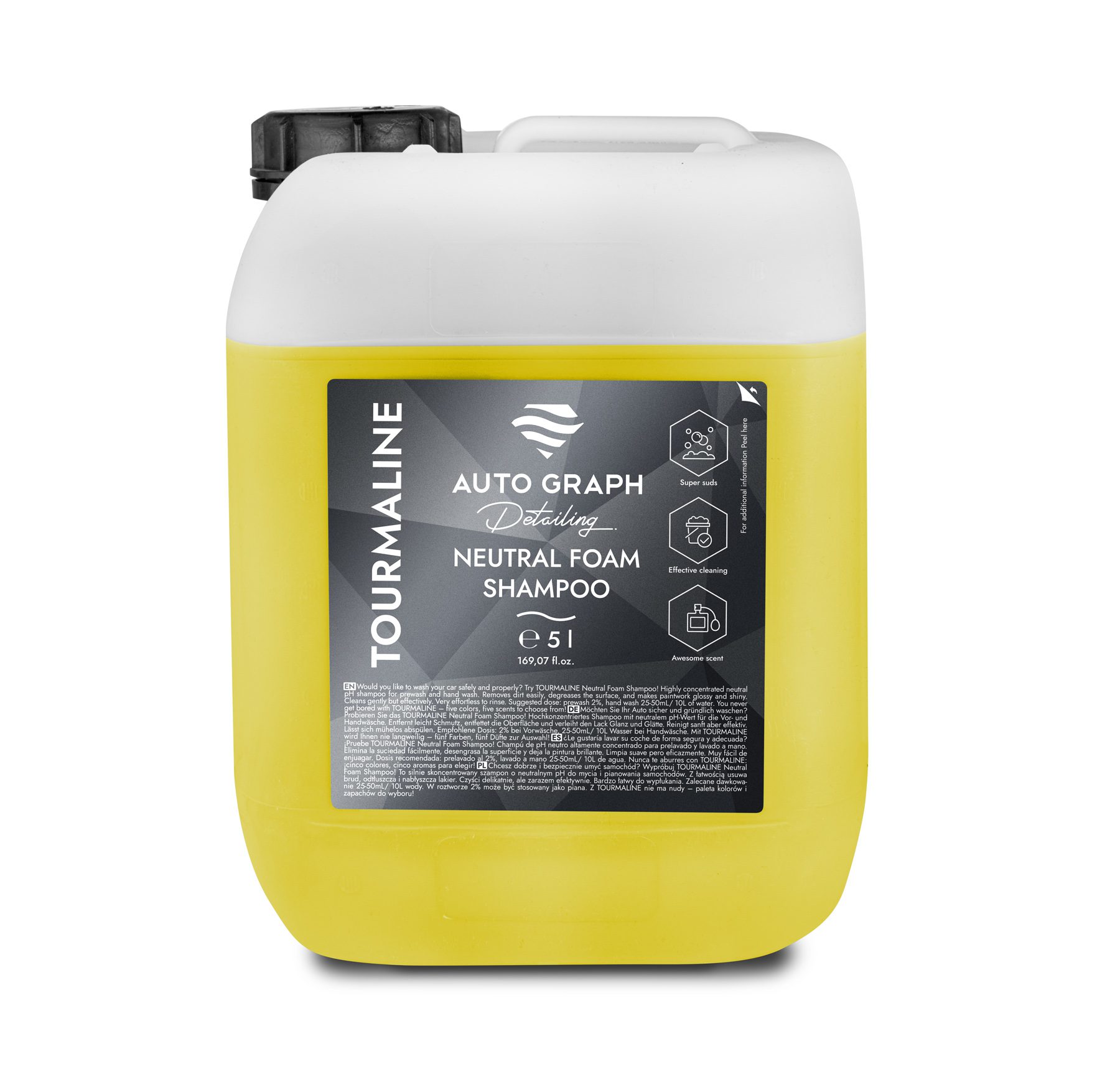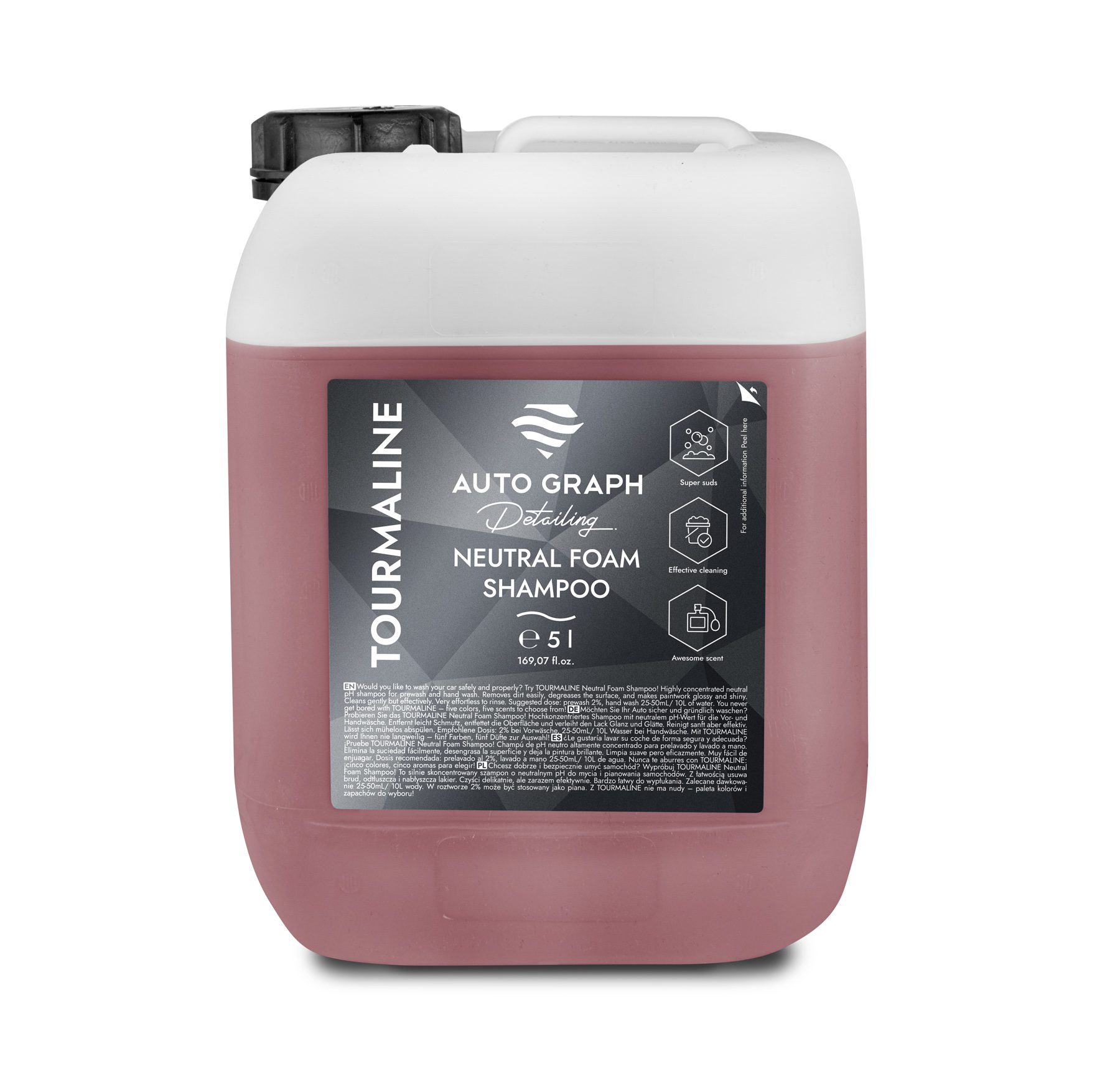 ¿Te gustaría lavar tu coche de forma segura y adecuada? ¡Prueba el TOURMALINE Neutral Foam Shampoo! Champú de pH neutro altamente concentrado para prelavado, snow foam y lavado a mano. Elimina fácilmente la suciedad, desengrasa la superficie y deja la pintura brillante. Limpia suavemente pero con eficacia. Muy fácil de enjuagar.